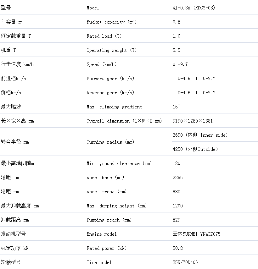 產品詳情 WJ-0.8A (XDCY-08) 0.8立方內燃鏟運機 在線咨詢 產品詳情 主要性能特點 ●動力系統(tǒng)采用4100發(fā)動機,扭矩大、動力強勁。 ●傳動系統(tǒng)采用礦山專用液力變矩器、動力換檔變速箱,可靠性高,維修保養(yǎng)方便。 ●工作系統(tǒng)采用先導操控,使操作更加簡單,工作效率更高。 ●行車制動采用氣頂油鉗盤式制動,確保制動安全可靠。 ●尾氣凈化采用氧化催化器及水過濾系統(tǒng),大大降低了空氣污染。 ●采用255/70D406耐磨防穿刺輪胎,輪胎使用壽命更長。 ●采用技術回轉支承結構,故障率低,易維護。 ●采用液壓轉向,雙轉向油缸,轉向更平穩(wěn)。 ●整車機架鋼板加厚,整車鋼性增強,鏟斗鏟刃采用高強度合金鋼制造,耐磨抗剪切, V型結構,減小了鏟取阻力,使用壽命更長。 ●該機結構緊湊,轉彎半徑小,可進行鏟、裝、運、卸一體作業(yè),操作方便,作業(yè)效率高。適合回采出礦和巷道掘進出碴,以及工作場地和道路的修筑平整,材料運輸等輔助作業(yè)。
