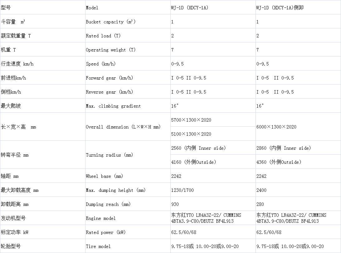 產(chǎn)品詳情 WJ-1D (XDCY-1A) 1.0立方內(nèi)燃鏟運(yùn)機(jī) 在線(xiàn)咨詢(xún) 產(chǎn)品詳情 ●動(dòng)力系統(tǒng)采用中國(guó)一拖東方紅4105增壓發(fā)動(dòng)機(jī),儲(chǔ)備扭矩大,動(dòng)力強(qiáng)勁,皮實(shí)耐造,適應(yīng)井下高溫、潮濕等惡劣工況。 ●傳動(dòng)系統(tǒng)采用山推280型液力變矩器、20型動(dòng)力換檔變速箱,并匹配大速比礦山機(jī)械濕式制動(dòng)橋,實(shí)現(xiàn)低速大扭矩,使一檔鏟裝更有力,鏟斗易于裝滿(mǎn),作業(yè)效率高;維護(hù)方便,配套件更易采購(gòu)。 ●工作系統(tǒng)采用先導(dǎo)操控,使操作更加簡(jiǎn)單,工作效率更高。 ●采用液壓轉(zhuǎn)向,雙轉(zhuǎn)向油缸,轉(zhuǎn)向更平穩(wěn)。 ●電氣系統(tǒng)經(jīng)過(guò)防水、防潮設(shè)計(jì),適應(yīng)井下潮濕工況。 ●發(fā)動(dòng)機(jī)進(jìn)氣系統(tǒng)采用油浴式空氣濾清器,取代普通的紙質(zhì)空氣過(guò)濾器(紙質(zhì)濾芯會(huì)因進(jìn)氣潮濕而變形堵塞,失去過(guò)濾效果),無(wú)需更換濾芯。 ●尾氣凈化系統(tǒng)采用水過(guò)濾裝置+氧化催化器,實(shí)現(xiàn)雙級(jí)過(guò)濾,尾氣以水霧的型式排出并快速沉降到地面,大大降低空氣污染,保護(hù)巷道環(huán)境及駕駛員身心健康。 ●行車(chē)制動(dòng)為多盤(pán)濕式制動(dòng),制動(dòng)安全可靠。 ●整車(chē)機(jī)架鋼板加厚,鋼性增強(qiáng),鏟斗主板采用舞鋼生產(chǎn)的耐磨500特鋼鋼板,經(jīng)久耐用,使用壽命更長(zhǎng)。 ●采用9.75-18光面耐磨防穿刺橡膠輪胎。 ●整機(jī)長(zhǎng)度≤5.7米,整機(jī)寬度≤1.3米,整機(jī)高度≤2.0米。 ●整機(jī)寬度1.3米,結(jié)構(gòu)緊湊、操作方便,可進(jìn)行鏟、裝、運(yùn)、卸一體作業(yè),作業(yè)功效高,適合回采出礦和巷道掘進(jìn)出碴,以及工作場(chǎng)地和道路的修筑平整、材料運(yùn)輸?shù)容o助作業(yè)。